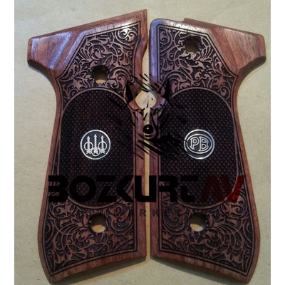 Beretta 92 FS 9 mm İşlemeli Gül Ağacı Tabanca Kabzası