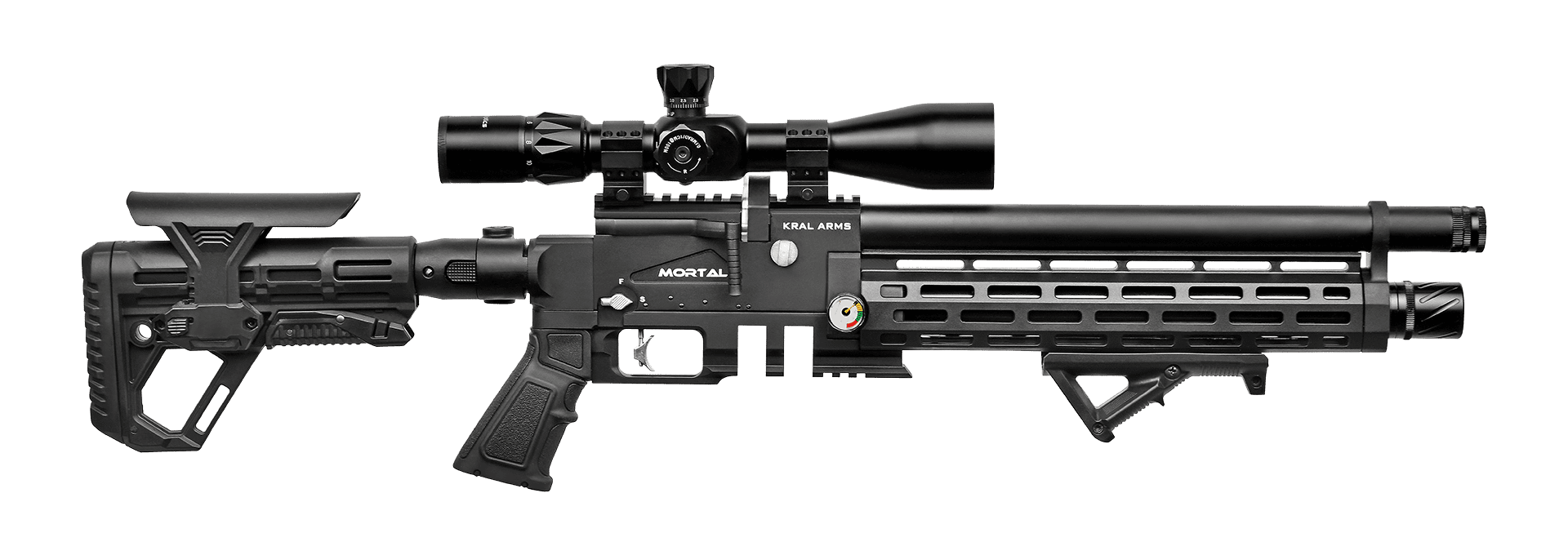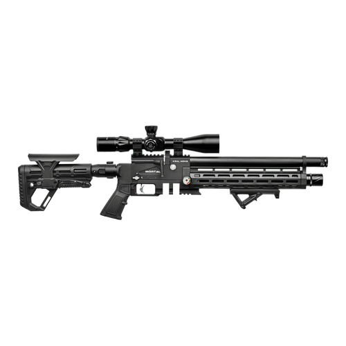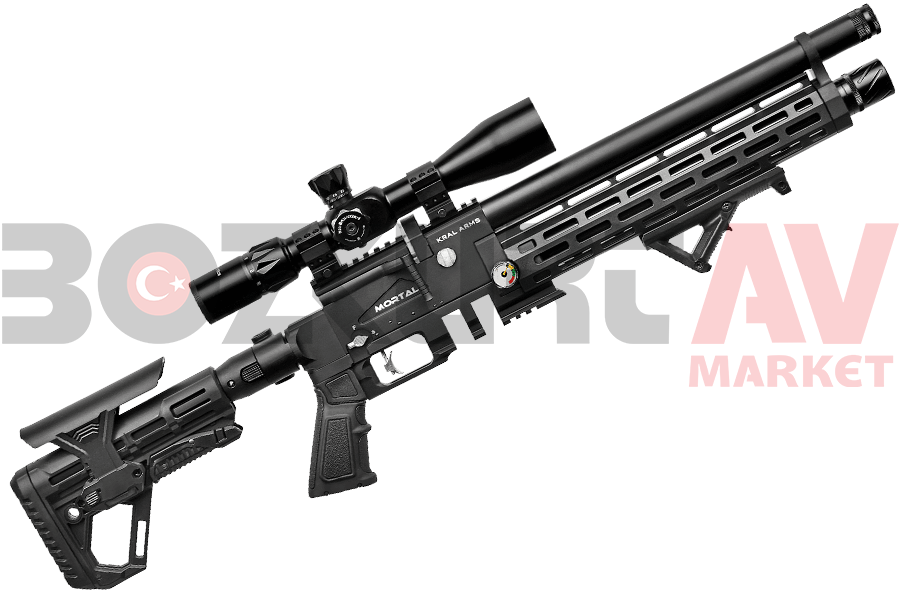 PCP dünyasında yeni bir standart! Kral Arms Mortal, agresif taktik tasarımı ve yüksek atış performansıyla hem hobi atıcıları hem de profesyoneller için geliştirilmiştir. En belirgin özelliği olan katlanabilir ve ayarlanabilir dipçik yapısı, taşıma kolaylığı sağlarken her kullanıcıya özel ergonomik bir atış pozisyonu sunar. Yüksek hava tüpü kapasitesi ve hassas namlu yapısı, Mortal'ı uzak mesafe atışlarında vazgeçilmez bir güç haline getirir.