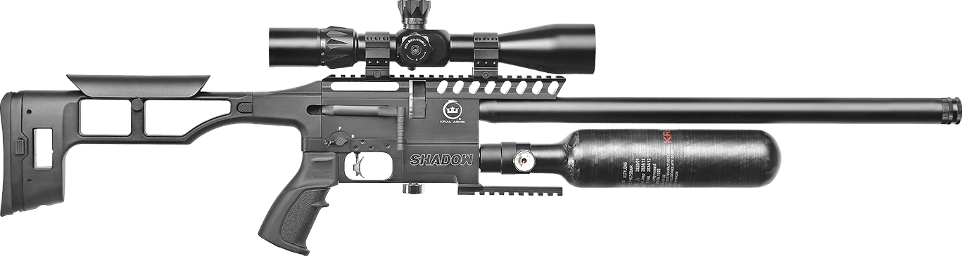 PCP dünyasında zirveye oynayan Kral Arms Shadow F, teknoloji ve hafifliği tek gövdede birleştiriyor. Onu standart modellerden ayıran en büyük özelliği; hafifliğiyle denge sağlayan 500 cc Karbon Fiber Tüpü ve her atışın aynı hızda çıkmasını sağlayan dahili regülatör sistemidir. Profesyonel atıcılar için geliştirilen Shadow F, ilk atıştan son atışa kadar kusursuz bir istikrar sunar.