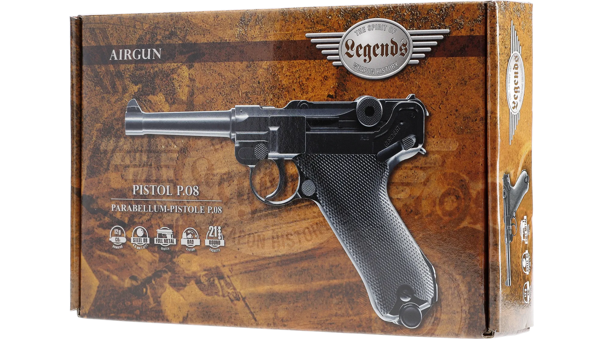 P08 Legends serisi, sağlam metal yapısı ve gerçekçi ağırlığıyla atış sırasında güven verir. Orijinaline sadık tasarımı sayesinde sadece bir havalı tabanca değil, aynı zamanda harika bir koleksiyon parçasıdır.